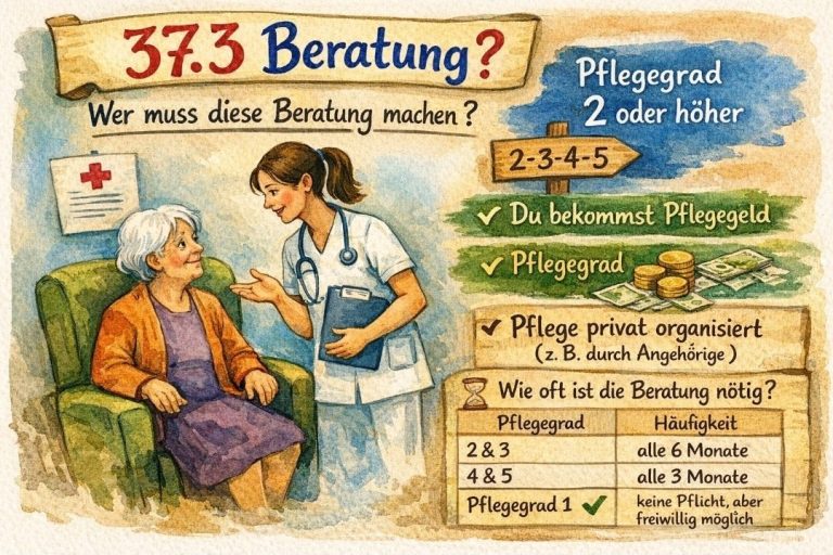 Die Pflichtberatung nach § 37.3 SGB XI (oft einfach „Beratungseinsatz“ genannt) betrifft Menschen, die Pflegegeld beziehen und zu Hause gepflegt werden.